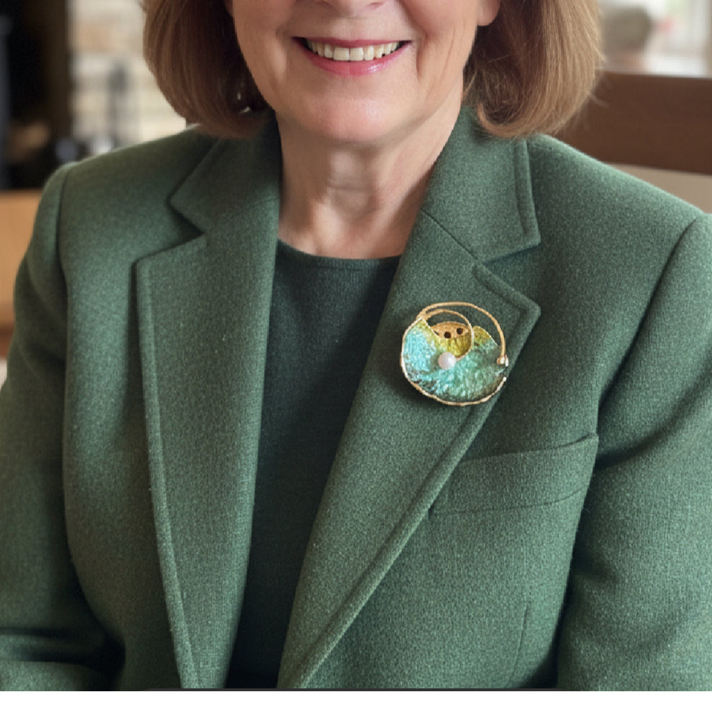 Pearl Oyster Magnetic Brooch in Greens
