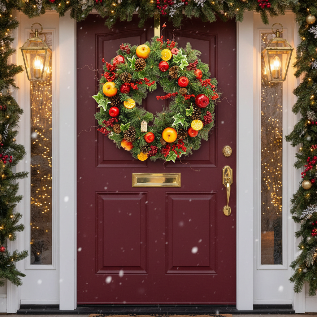 The Enchante Winter Orchard Wreath is an elegant and timeless way to enhance your home's holiday decor. This 60cm diameter wreath is crafted with vibrant fruits from the orchard and is sure to be a festive addition to any room. Enjoy the beauty of this timeless piece year after year.