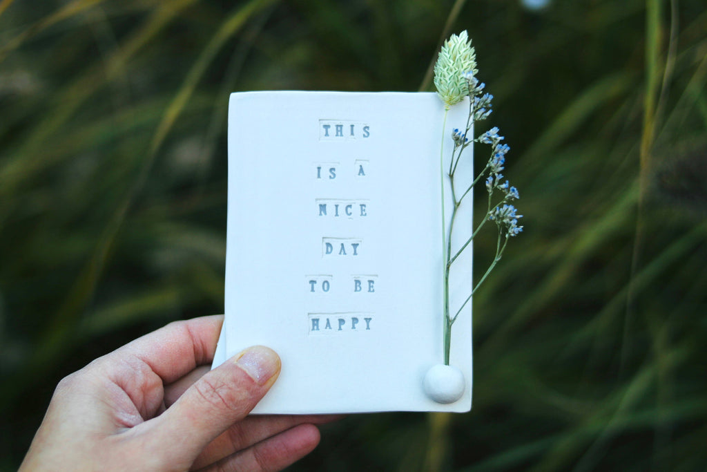 Ceramic card “Be happy” by Poca Ceramics