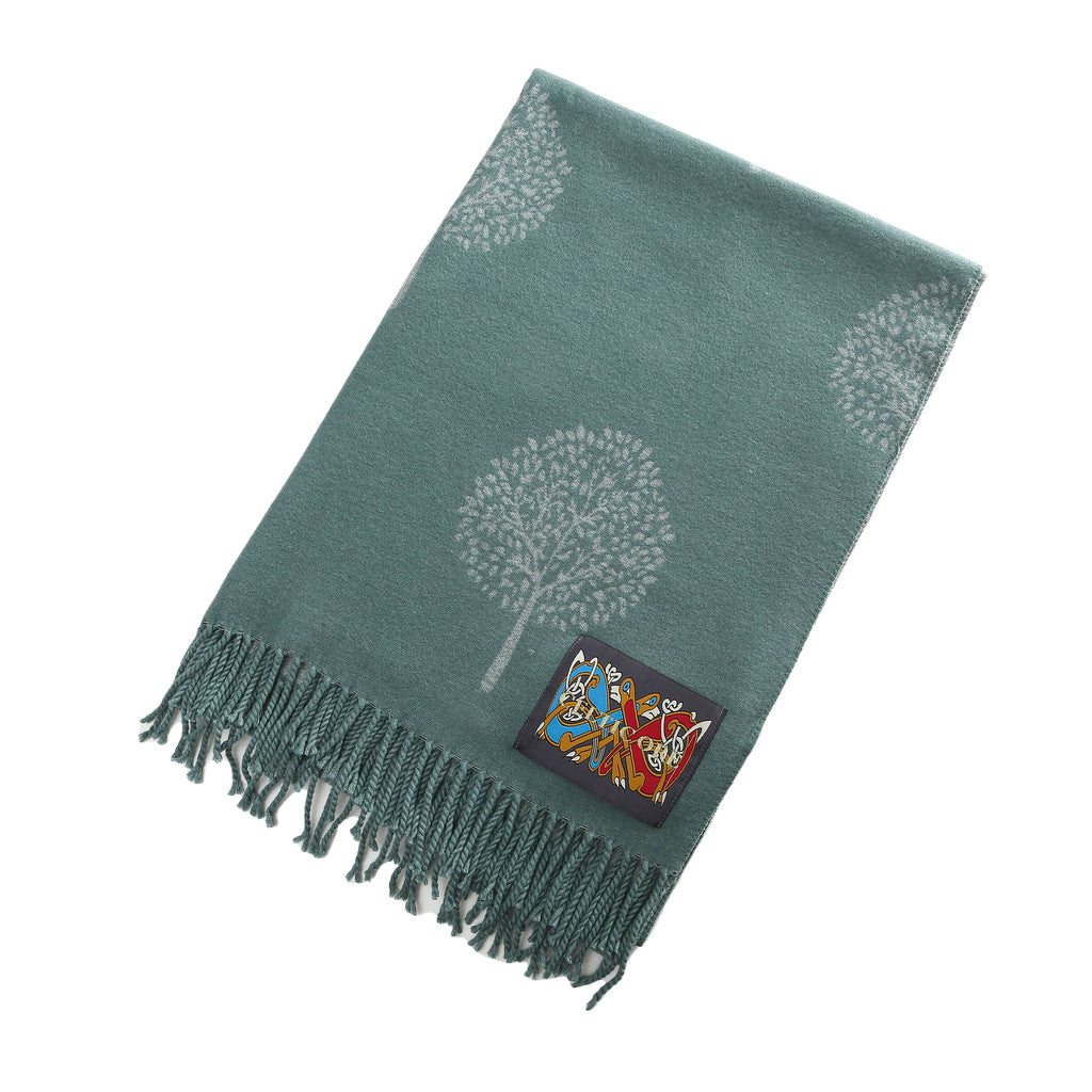 "Wrap yourself in luxury with our Large Double Sided Tree Scarf. The beautiful sage and grey colorway adds an elegant touch to any outfit. Stay warm and stylish with this on-trend accessory."