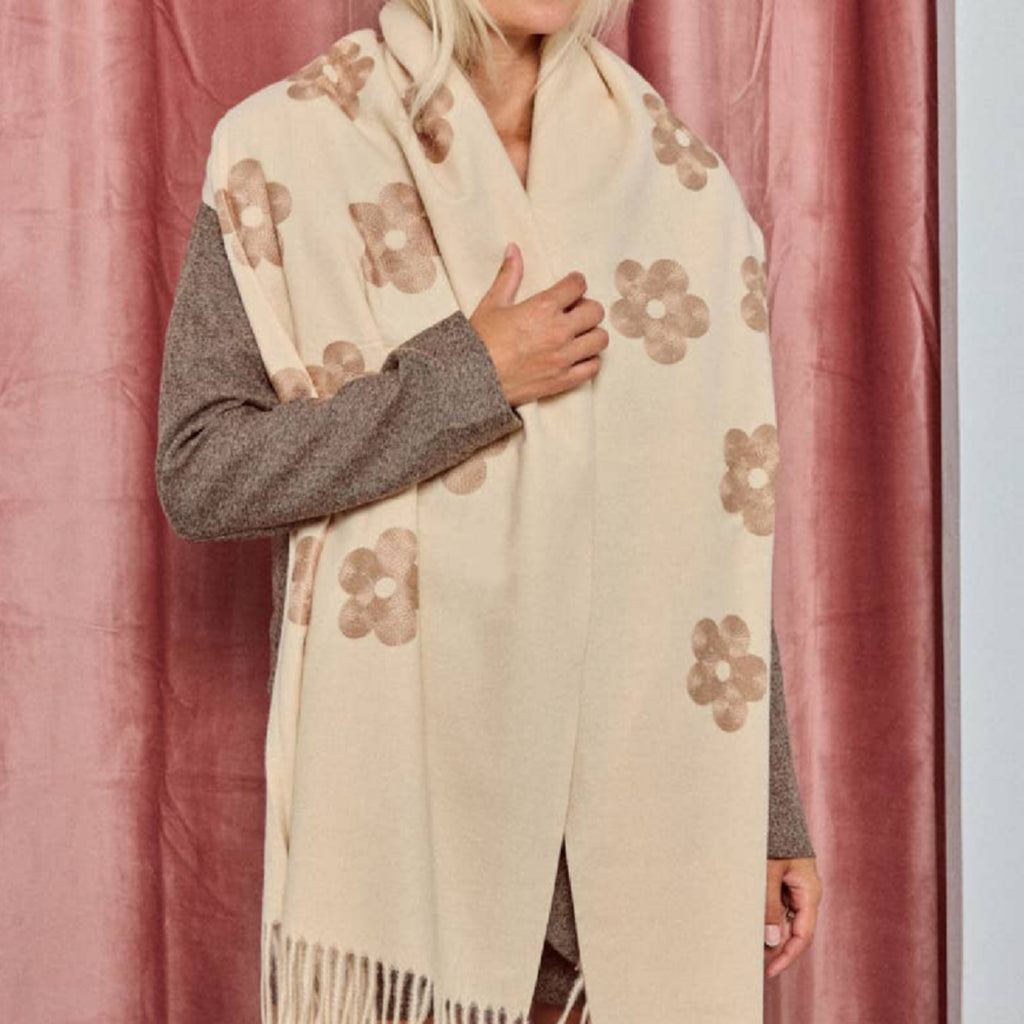 Dressy Wool scarf with floral pattern on Creams and Taupe