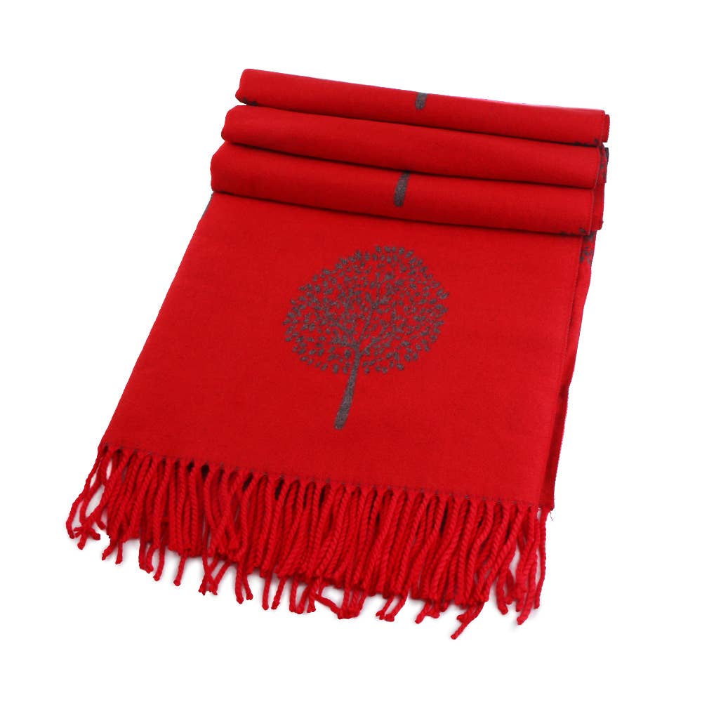 Indulge in this exquisite Large Double Sided Tree Scarf. Its fashionable design is both warm and on trend, making it a must-have accessory. The beautiful red and grey colourway adds a touch of sophistication to any outfit. Elevate your style with this luxurious scarf.