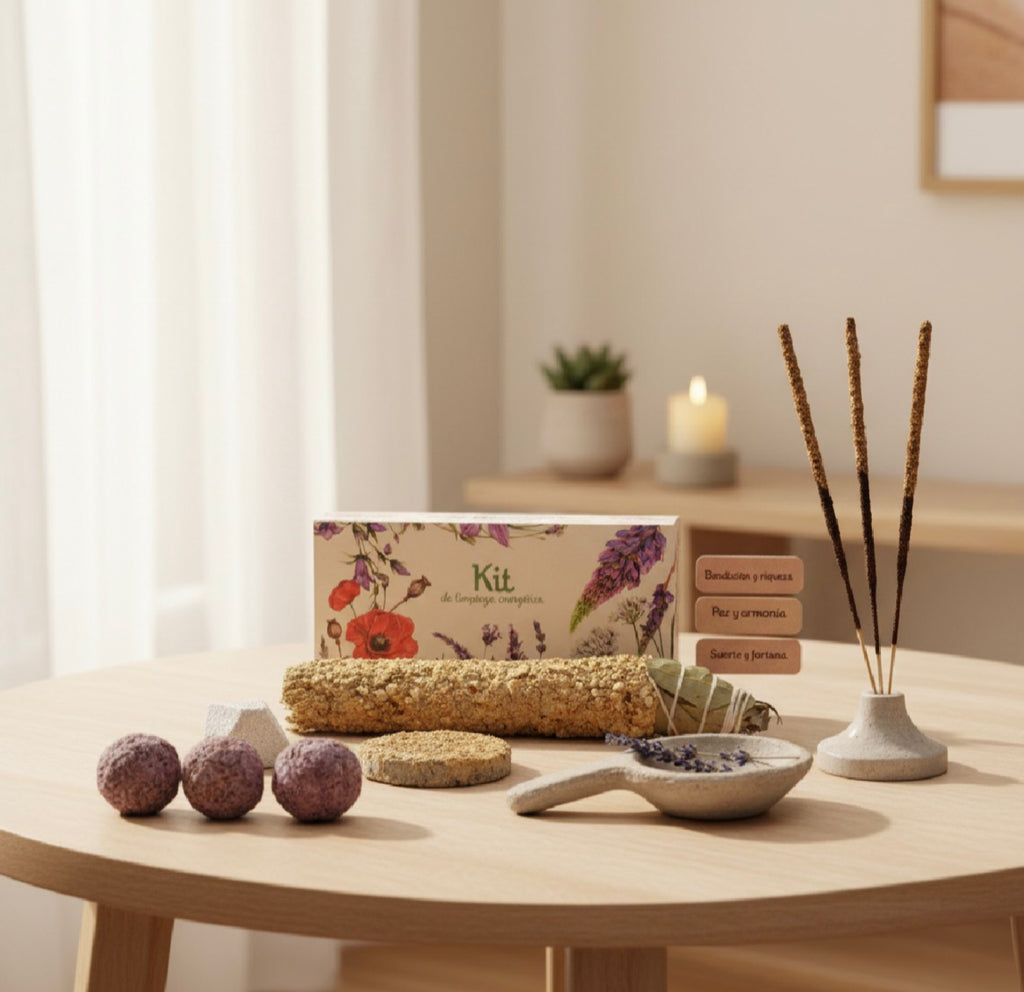 We offer with love and dedication tools to connect us, capable of carrying our intention and prayers to the ends of the Universe. This Kit contains: • Incense tablet • Double-layered palo santo, incense, and myrrh smudges • Lavender bombs and incense pearls • Energetic pyramid for smudging coated with yagra and incense • Orange and incense smudge • Cement or ceramic smudging bowl