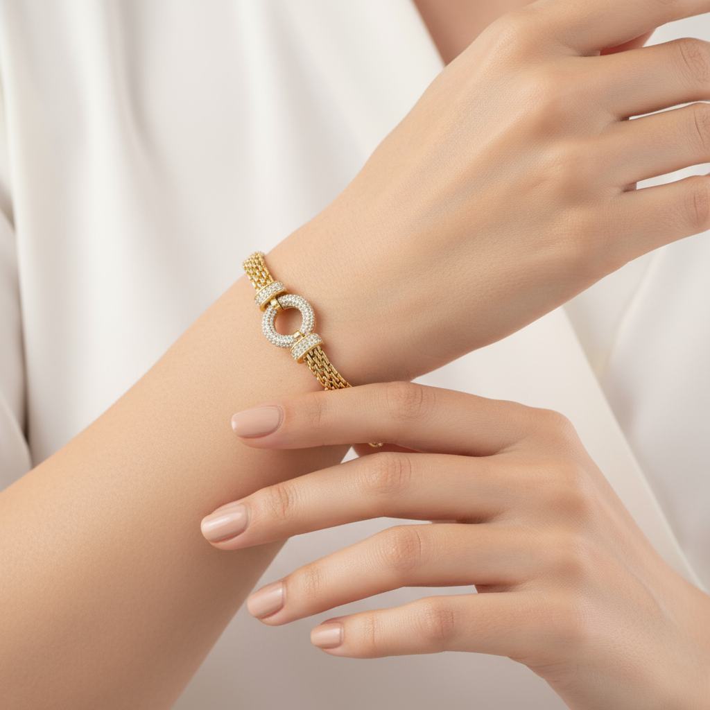 Gold Popcorn Link Necklace with CZ Halo BY Absolute Jewellery
