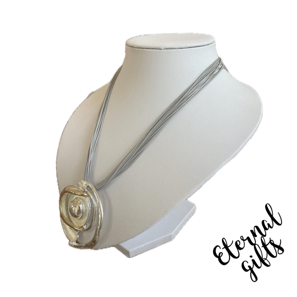 Transform your look with the elegant Statement Pendant by Estela. The magnetic clasp ensures effortless wear and the leather lace chain adds individuality