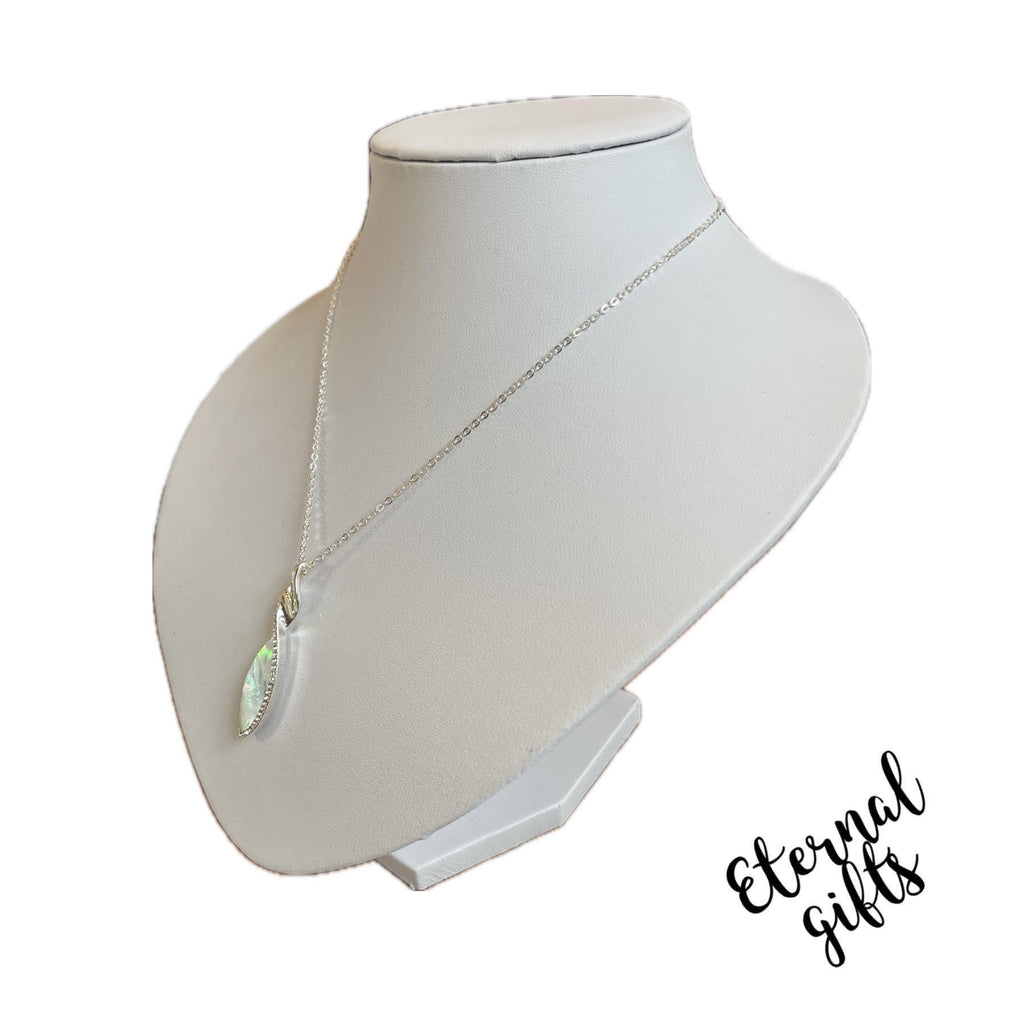 This Tear Drop Mother of Pearl Pendant by Estela is a beautiful piece.