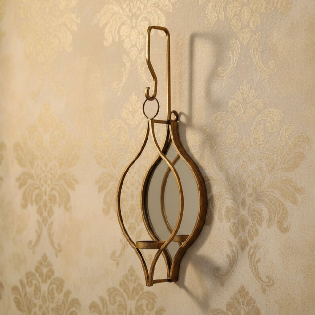 Boho inspired wall hanging candle holder, mirrored back with painted gold finish. Available in a single, double or triple option. Perfect as a solo feature piece or paired in two's or three's.