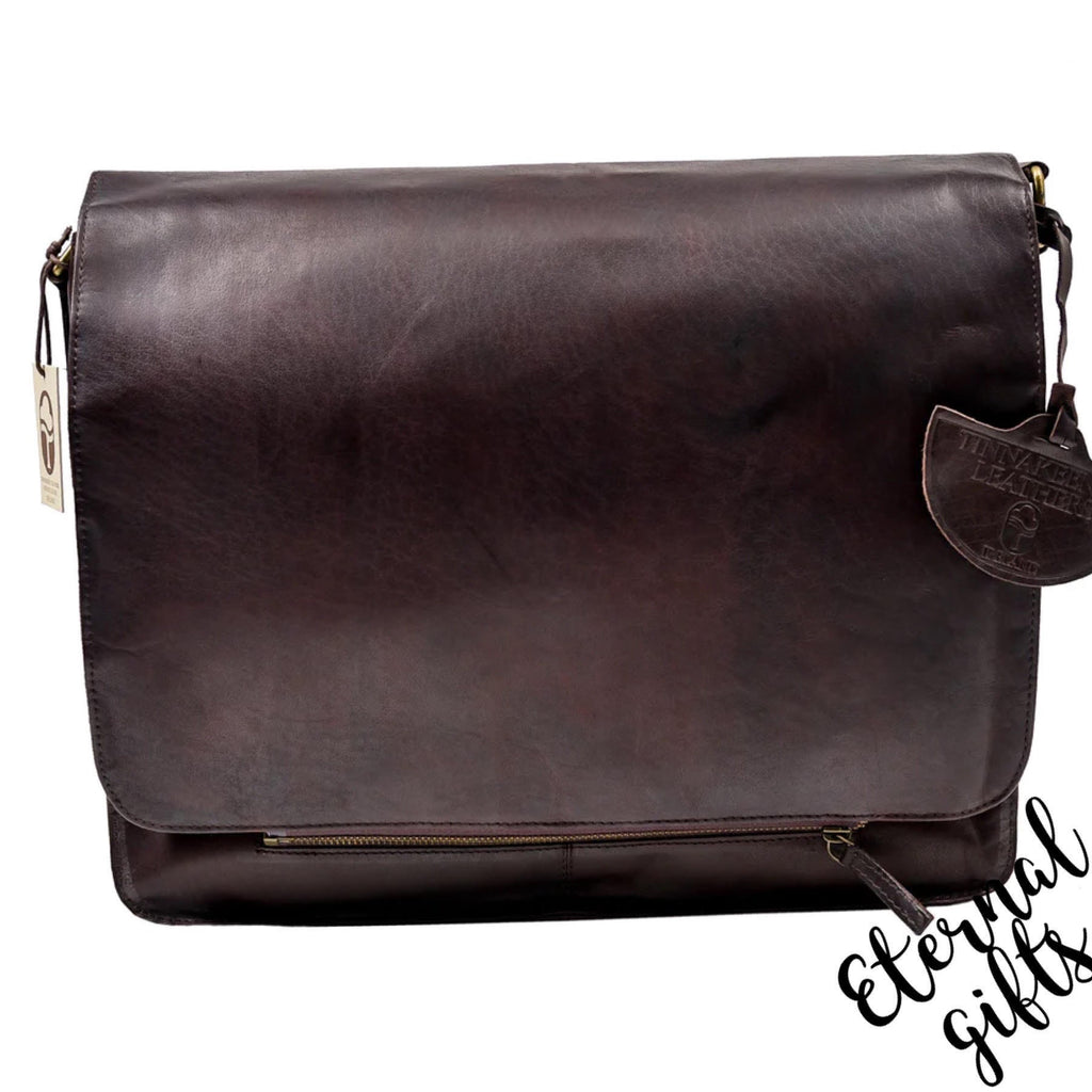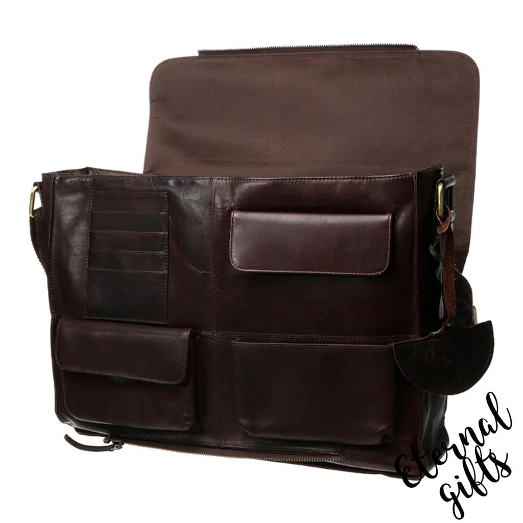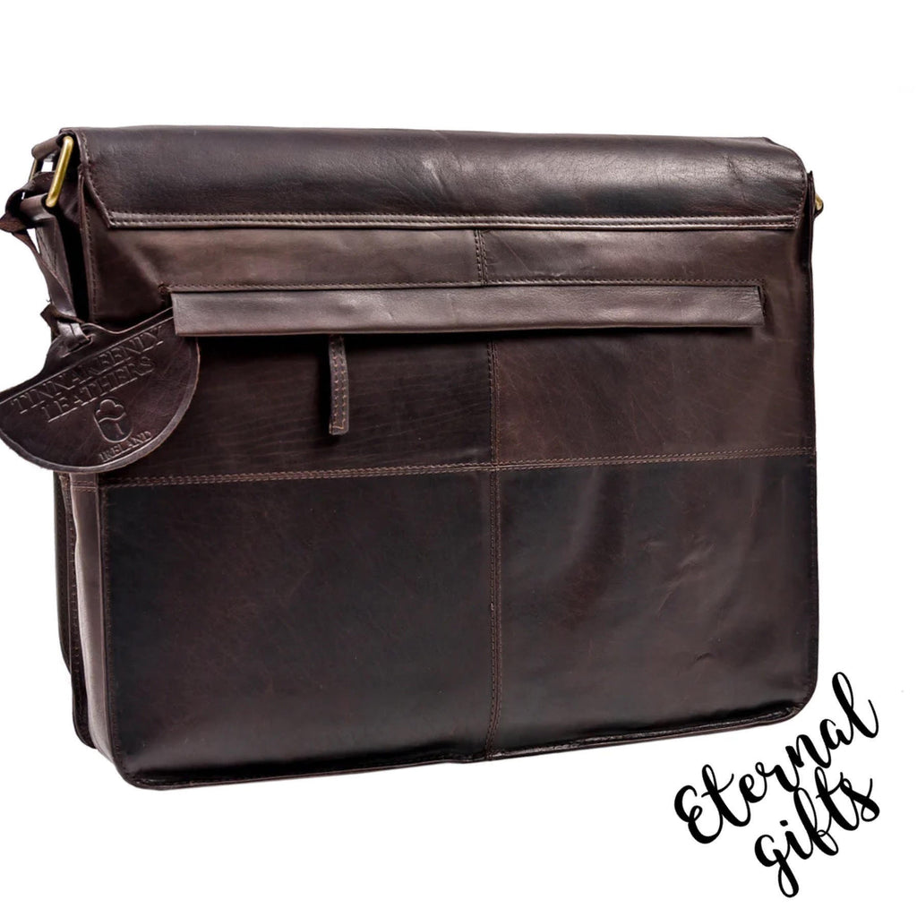 LEATHER SATCHEL FOR 15" LAPTOP GENERAL PURPOSE Tinnakeenly Leathers in Brown