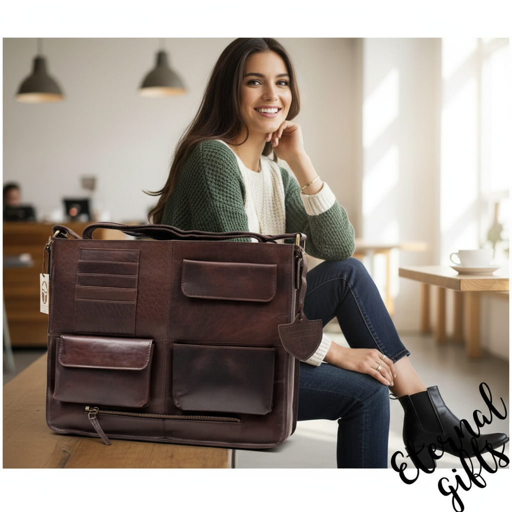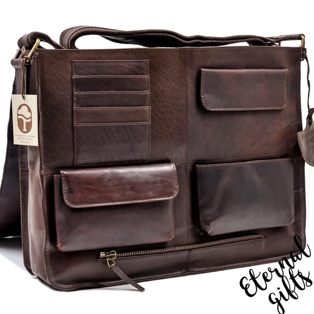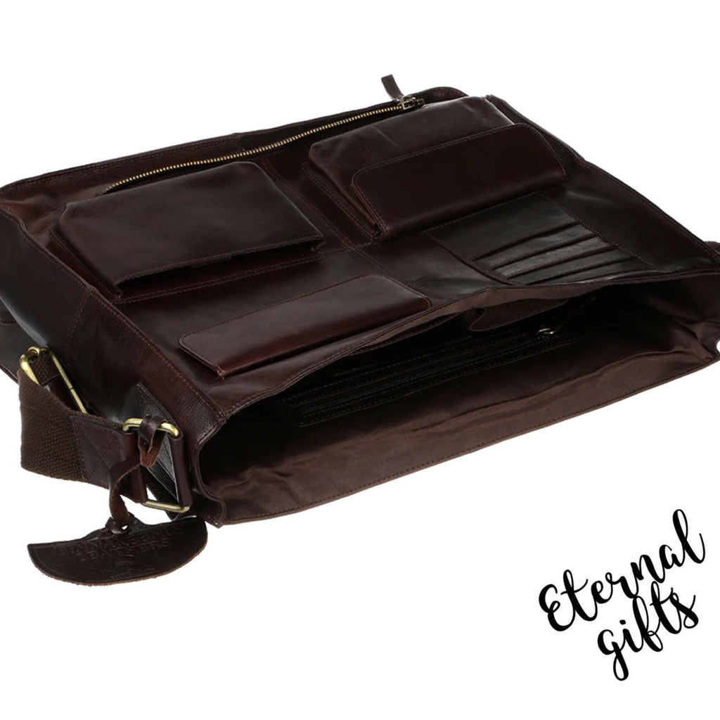 LEATHER SATCHEL FOR 15" LAPTOP GENERAL PURPOSE Tinnakeenly Leathers in Brown