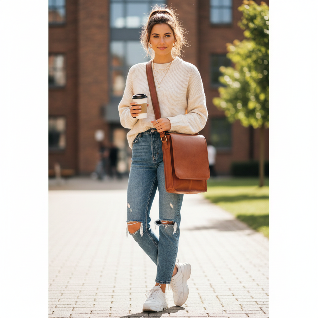 Luxury Irish Soft Leather Messenger Bag in Tan -Tinnakeenly Leather